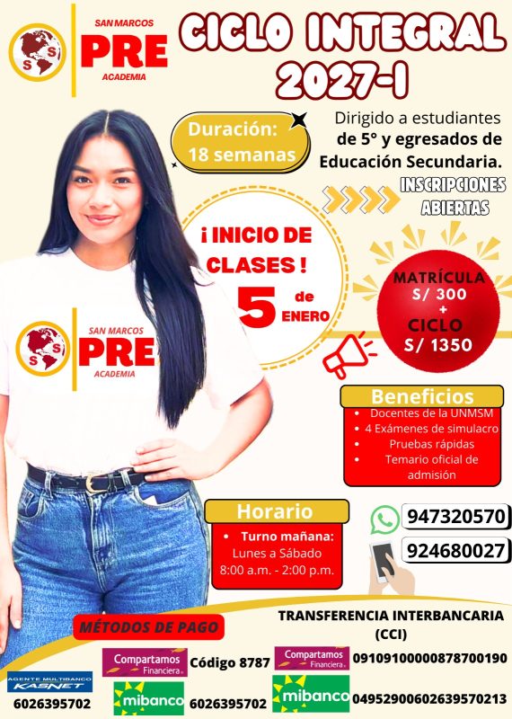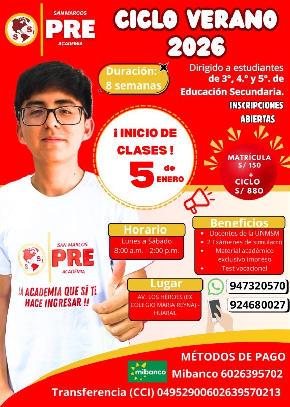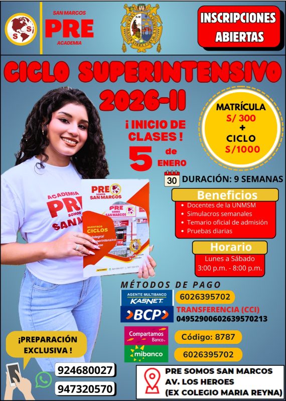 • Inicio ideal para prepararse rumbo a la UNMSM.